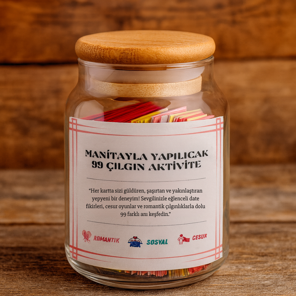 “Hediye olarak aldım, bayıldı! Kavanozun tasarımı çok şık ve içindeki aktiviteler çok yaratıcı. Sıradan hediyelerden çok daha anlamlı bir hediye oldu.” – Mert D.
